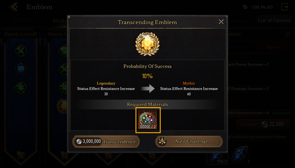 - Players can Transcend (Enhance) Family Slot that obtains Legendary Stats to a Higher Tier of Mythic Stats.