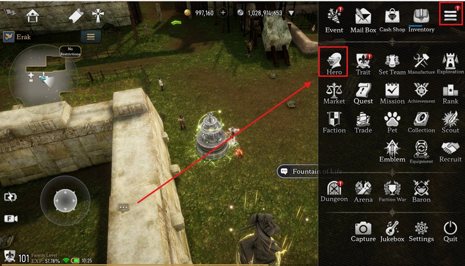 - The Hero Enhancement System can be accessed via the Menu option, under the Hero Page.
