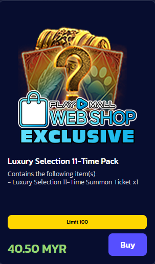 – [2:36 PM] Additional items is not limited to 1 time per account. Users can purchase “Luxury Selection 11-Time Pack” for 24 times and receive 8 sets of FREE additional items.