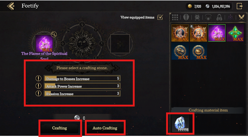 Here, players can Select which Stat Type do they want, and Auto Craft. This feature is similar to Fortify. Players need to use Engraving Stone, in order to Craft Arcane.