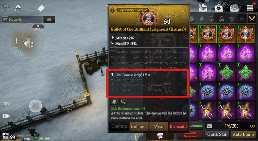 Players can view Arcane under the new Arcane Slot in the Bag Feature. Here, Players can View, Enhance, and Dismantle Arcane to their liking.
